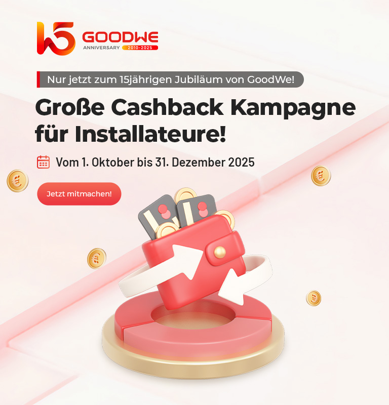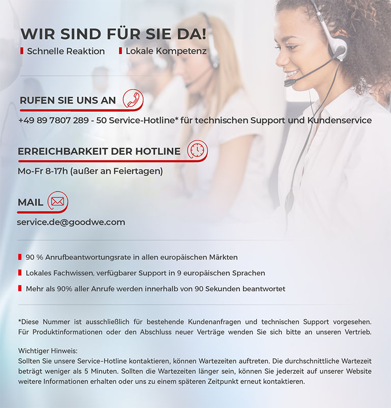Willkommen auf der deutschen GoodWe Corporate Website. GoodWe ist ein führender Hersteller von Solarwechselrichtern, Energiespeicherlösungen und gebäudeintegrierten Photovoltaikmodulen. In dieser Website finden Sie alle Informationen zu unseren Solarprodukten und -dienstleistungen sowie die neuesten Nachrichten aus der GoodWe-Familie.